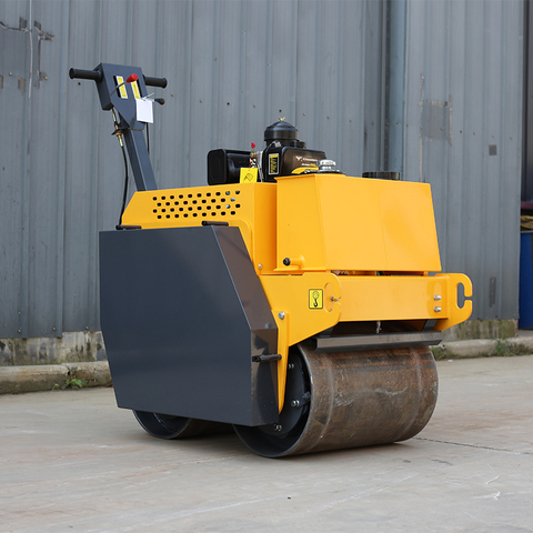 Mini rodillo de carretera de un solo tambor para caminar detrás de la construcción Rodillo de tambor doble con componente de motor central